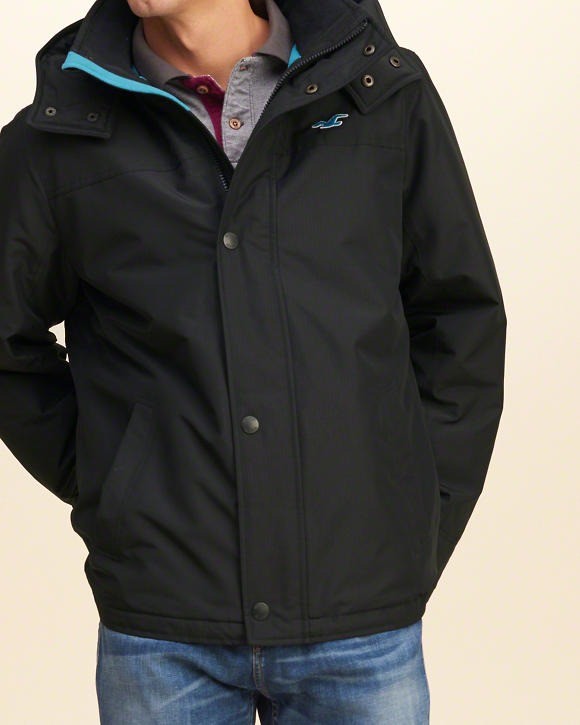 Hollister by Abercrombie All Weather Coat Jacket Men's Black Hooded Fleece M #HollisterbyAbercrombie #BasicJacket | Hollister jackets, Mens jackets, Jackets