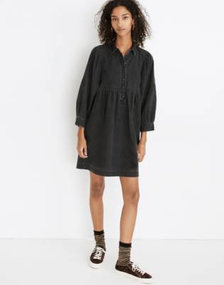 Denim Babydoll Shirtdress in Washed Black