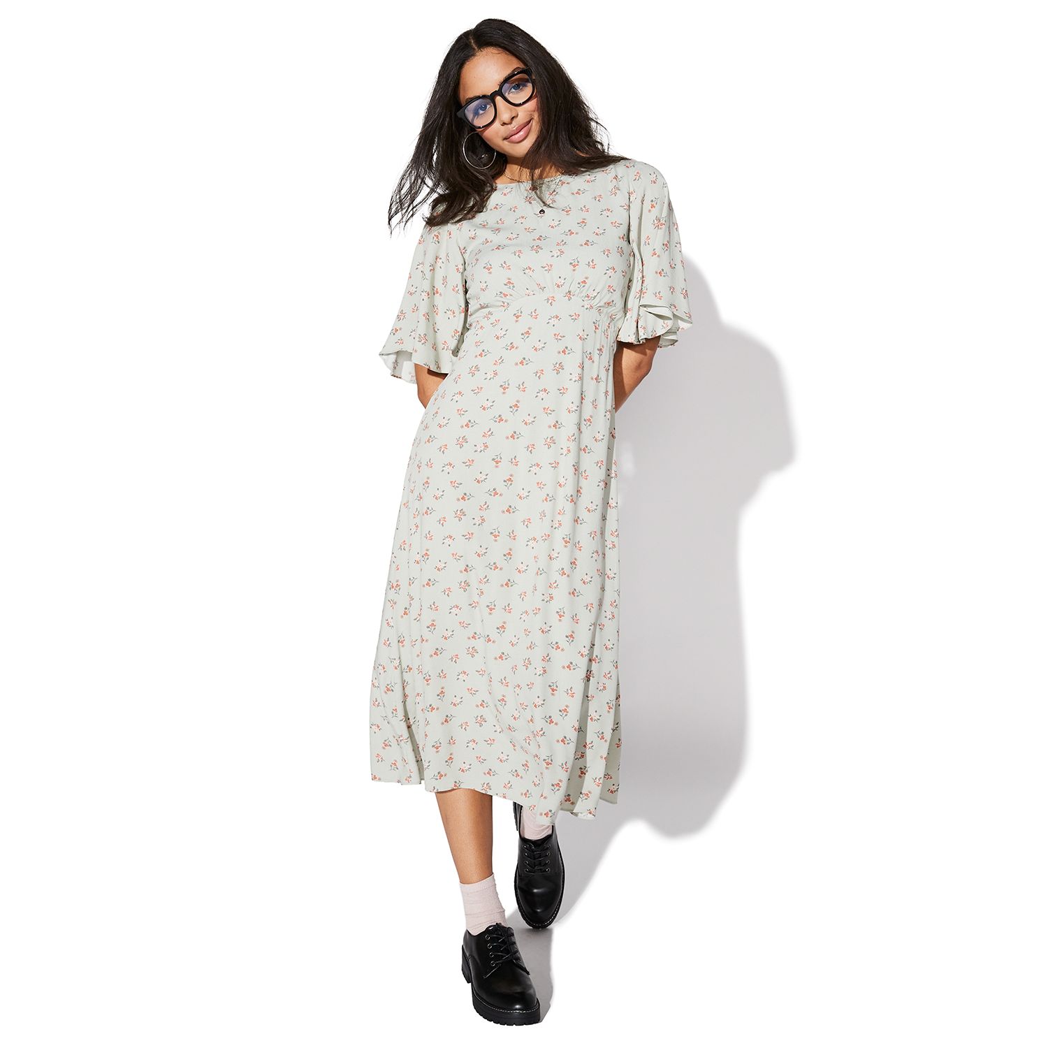 Empire Flutter Sleeve Midi Dress