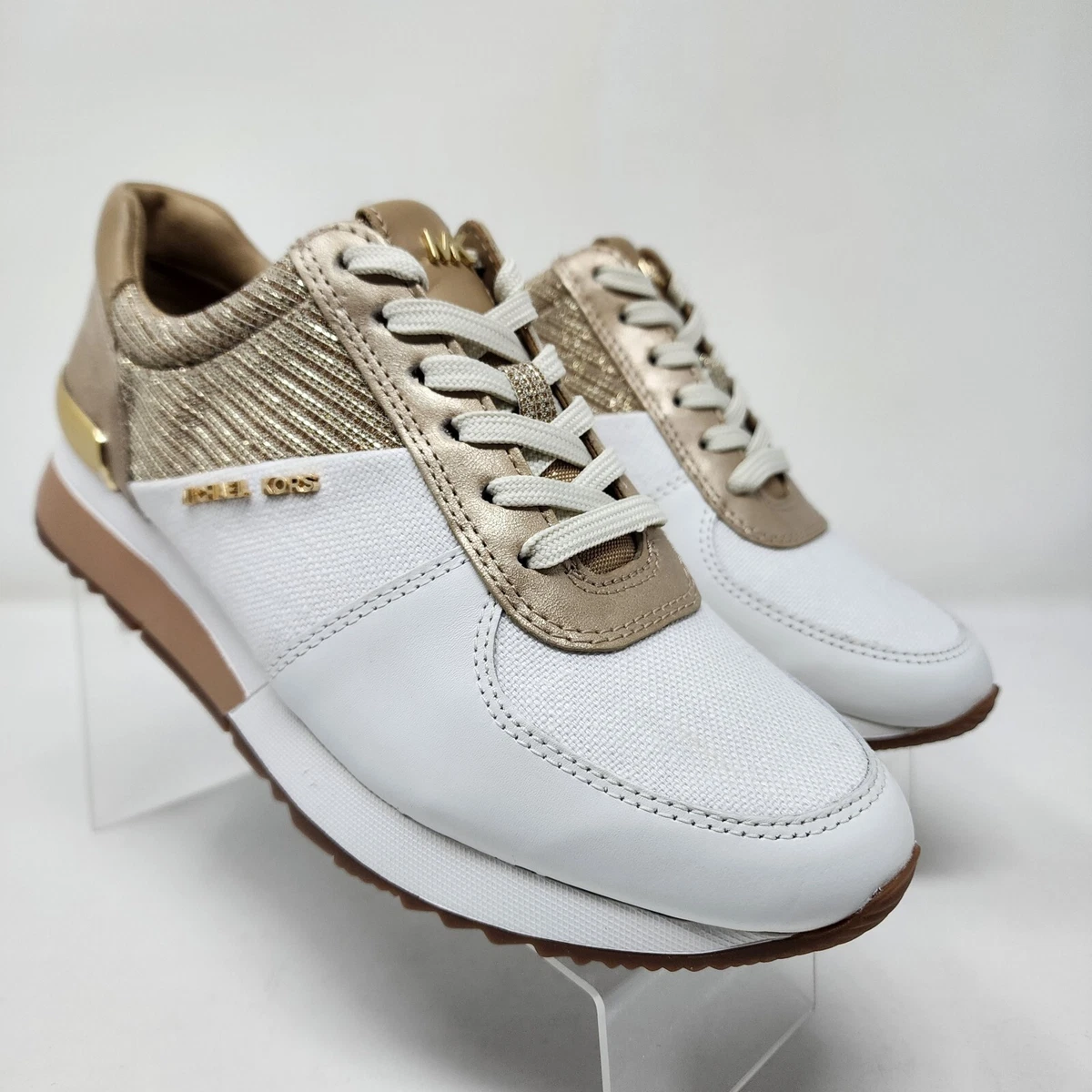 Michael Kors Sneakers Womens 5.5 White Golden Glitter Allie Wrap Trainer Shoes | eBay
