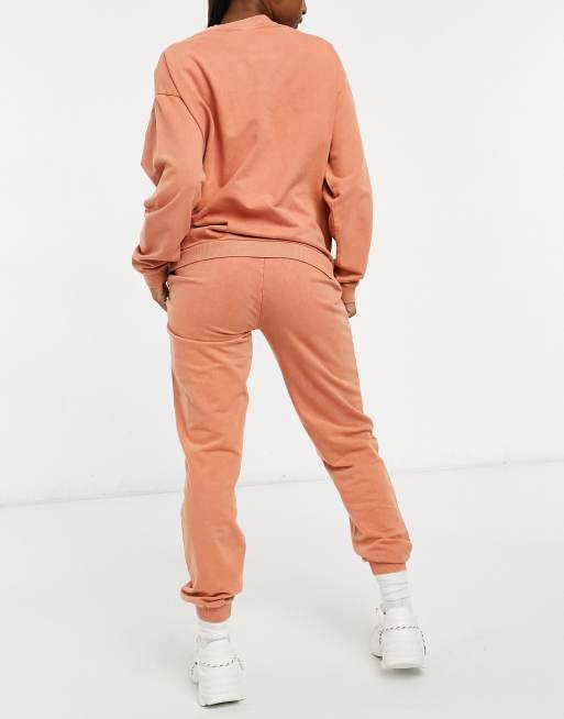 ASOS DESIGN Maternity tracksuit sweatshirt and pintuck front in acid wash in terracotta | ASOS