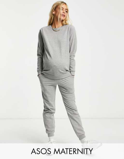 ASOS DESIGN Maternity tracksuit ultimate sweat / sweatpants with tie in cotton in gray heather - GRAY | ASOS